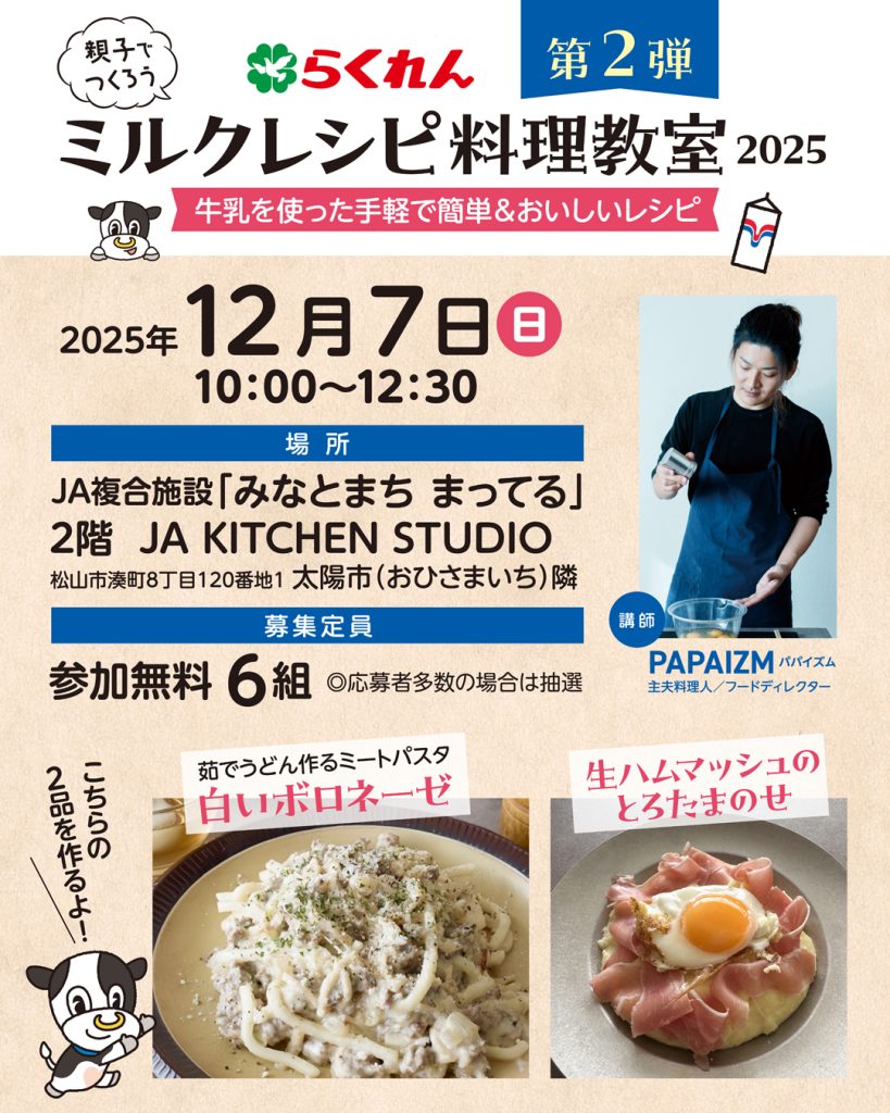 「親子でつくろう ミルクレシピ料理教室」第2弾を開催いたします。